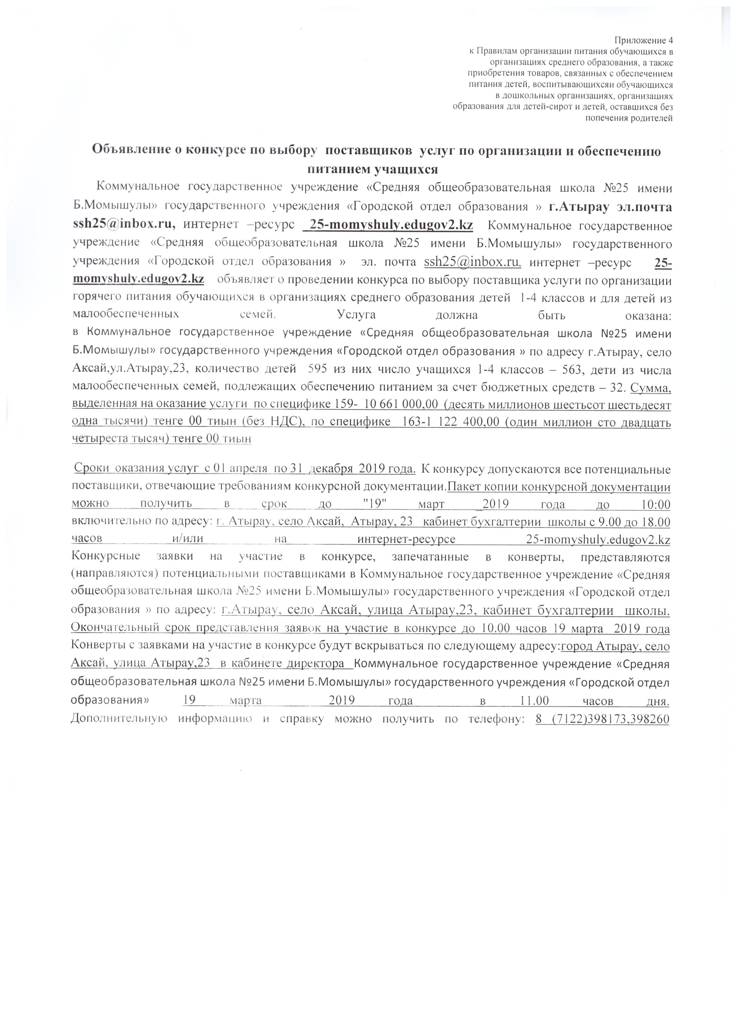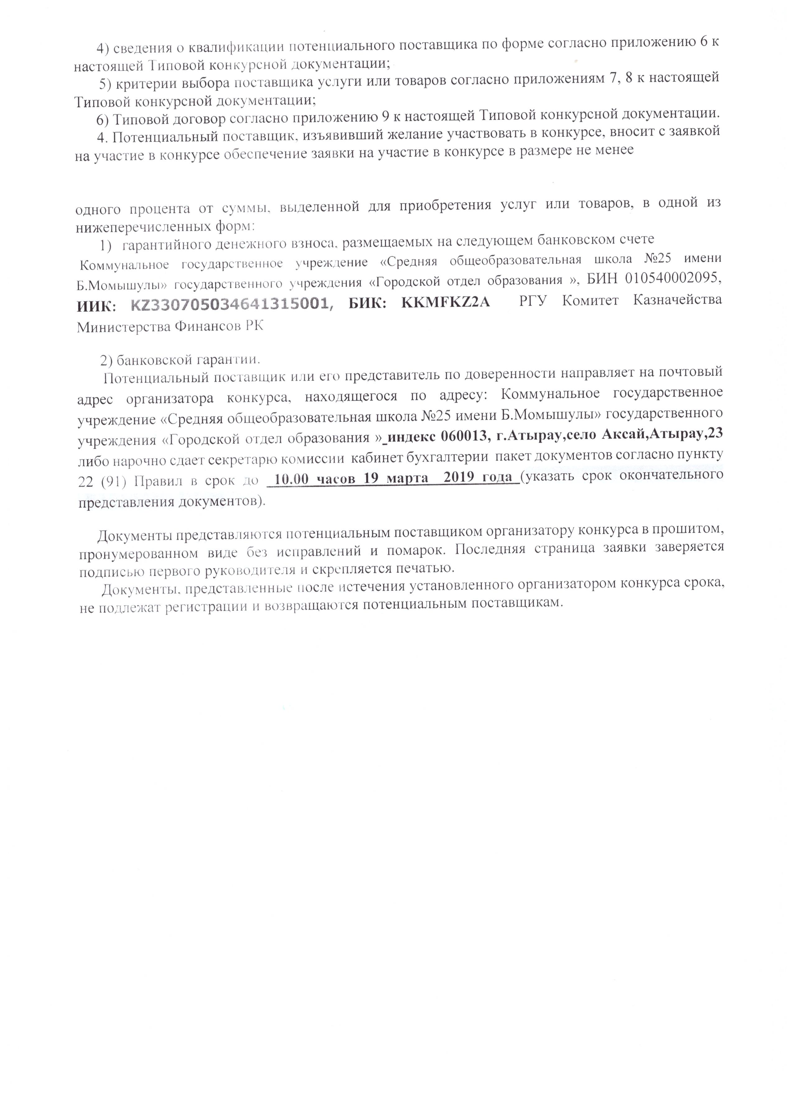 Кроме того, Министерством совместно с МФ РК прорабатывается вопрос перевода конкурсных процедур в электронный формат постредством портала государственных закупок.