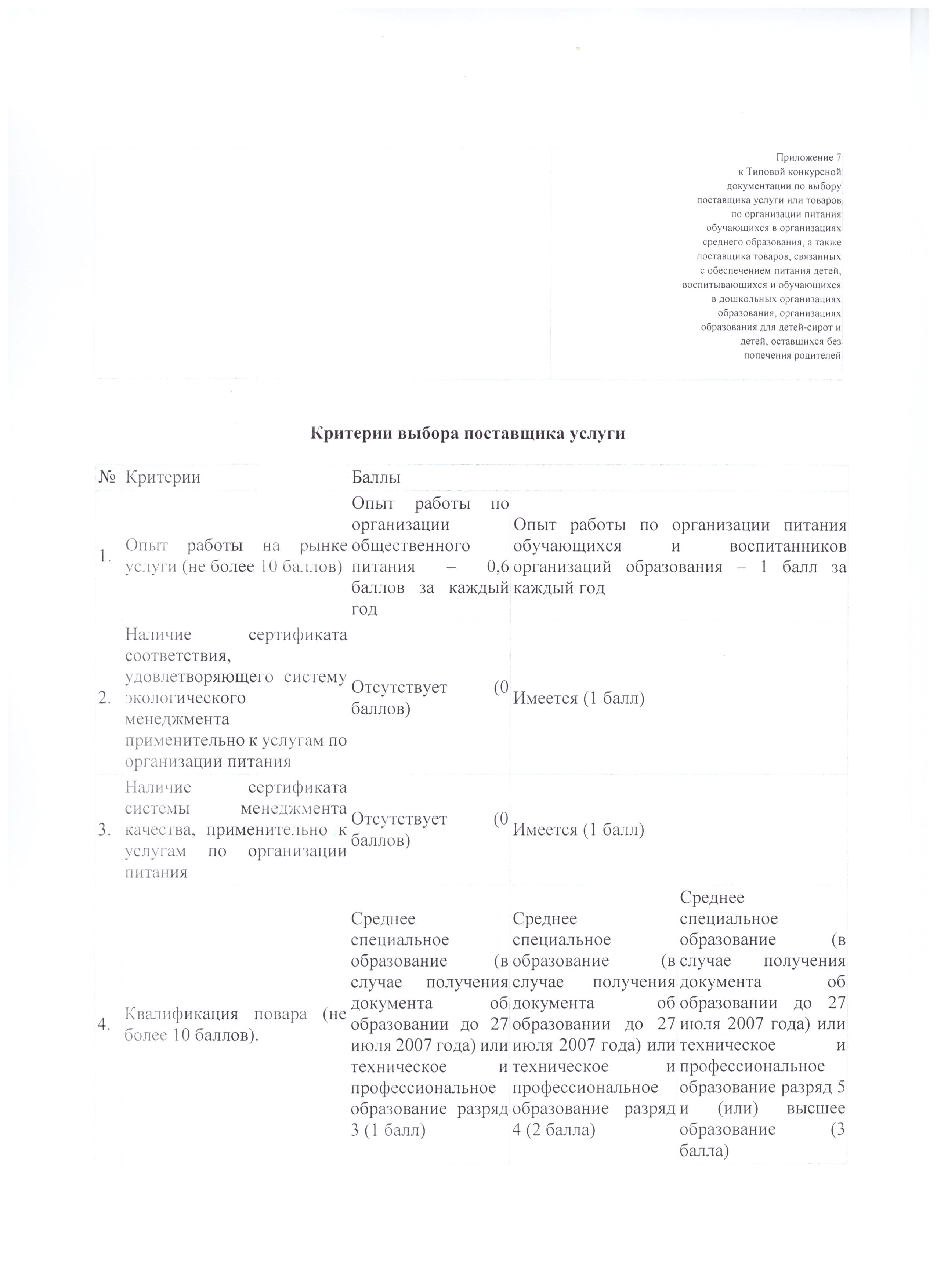В целях гарантирования качества и безопасности питания детей в Правилах предусмотрены критерии, позволяющие выбрать поставщика более подготовленного к оказанию данной услуги с наличием квалифицированного штата работников (опыт работы, квалификация поваров, наличие технологов, диетологов, положительных характеристик, собственного производства продуктов питания, энергосберегающего оборудования).